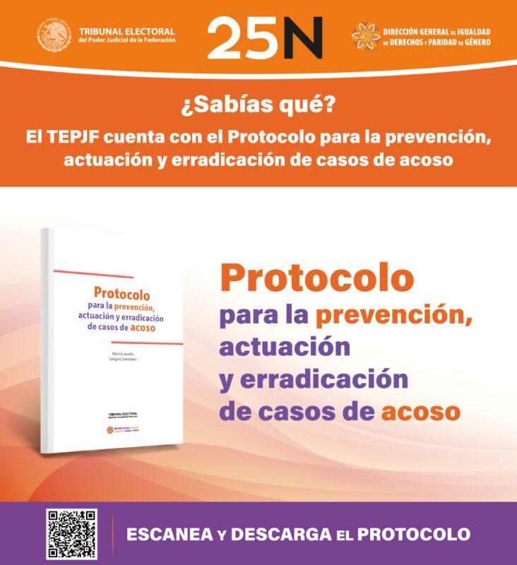 Tribunal Electoral del Poder Judicial de la FederaciónInfografías 16 días de activismo contra la violencia de género El #TribunalElectoral cuenta con el «Protocolo para la prevención, actuación y erradicación de casos de acoso». Por Araceli Bastida - diciembre 8, 2024 0 FacebookTwitterPinterestLinkedinReddItEmailWhatsAppTelegramVK