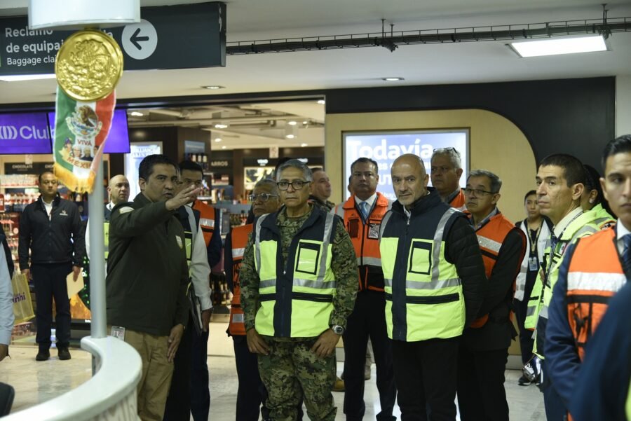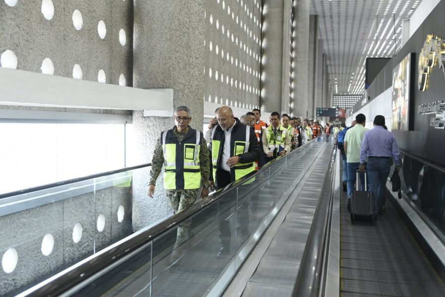 En compañía de la subsecretaria de Comunicaciones y Transportes, Tania Carro Toledo; el director general del AICM, Contralmirante José Ramón Rivera Parga, y el director general del Grupo Aeroportuario de la Ciudad de México (GACM), Juan Padilla Olmos, los secretarios visitaron la Terminal 1 y la Terminal 2 del aeropuerto capitalino.