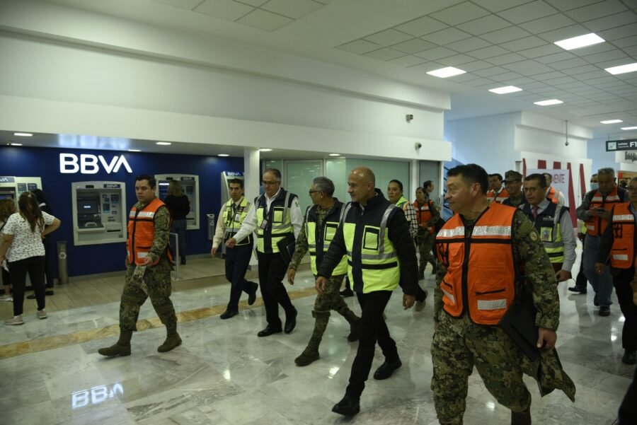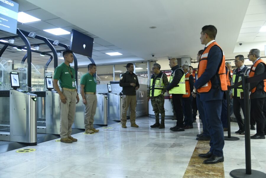 En la Terminal 1, en el área internacional acudieron al Centro de Monitoreo, donde se registra el movimiento aeroportuario que permite confirmar, mediante el control de cámaras de seguridad, su buen funcionamiento en el movimiento de pasajeras y pasajeros.
