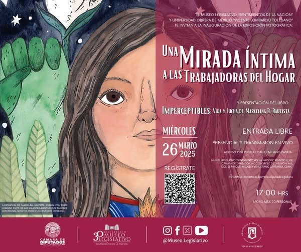 Camara de DiputadosInfografías Acompáñanos en la inauguración de la exposición fotográfica: Una mirada íntima a las trabajadoras del hogar. También se presentará el libro: Vida y lucha de Marcelina B. Bautista. Por Araceli Bastida - marzo 23, 2025 0 FacebookTwitterPinterestLinkedinReddItEmailWhatsAppTelegramVK