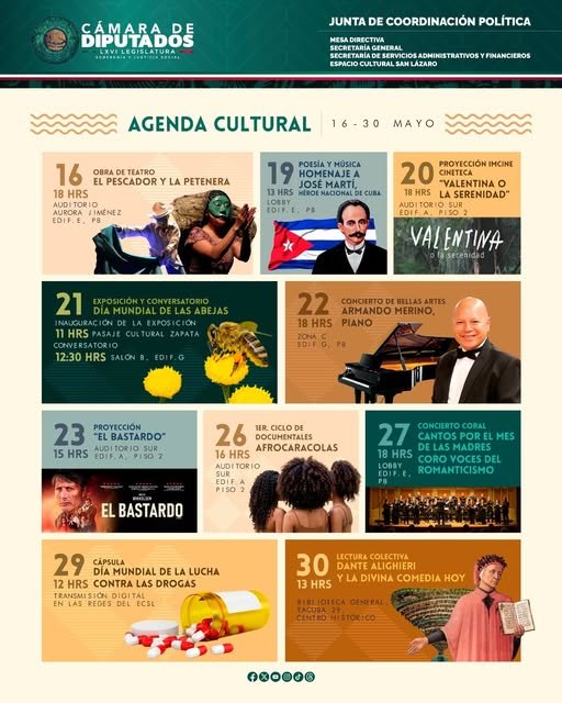 Camara de DiputadosInfografías #AgendaCultural | ¡Mayo se vive con cultura en la Cámara de Diputados! Por Araceli Bastida - mayo 19, 2025 0 FacebookTwitterPinterestLinkedinReddItEmailWhatsAppTelegramVK