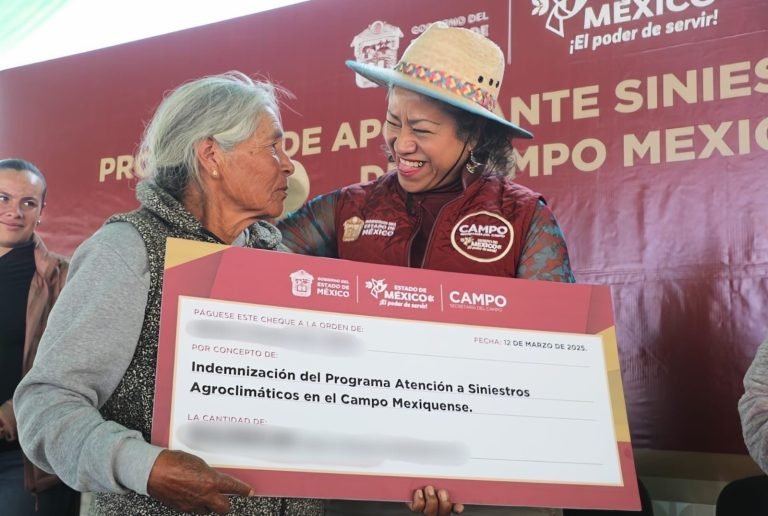 ZUMPANGO, Estado de México. – A través del Programa Atención de Siniestros Agroclimáticos en el Campo Mexiquense (PASACME), el Gobierno de la Maestra Delfina Gómez Álvarez, entregó tres millones 217 mil 120 pesos a 500 productores agrícolas, cuyos cultivos fueron afectados, durante 2024, por fenómenos climatológicos como sequías, inundaciones y vientos.