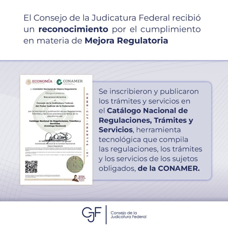 Consejo de la Judicatura FederalInfografías Aquí te contamos más sobre el reconocimiento que la #CONAMER entregó al #CJF en materia de Mejora Regulatoria Por Araceli Bastida - noviembre 29, 2024 0 FacebookTwitterPinterestLinkedinReddItEmailWhatsAppTelegramVK