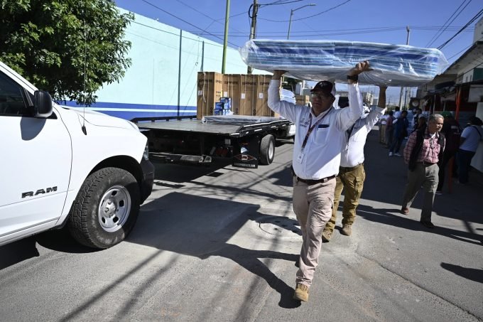 “Hoy en ese proceso de entrega de apoyos, se hace precisamente la entrega paquetes de enseres domésticos que incluyen colchón, bases para cama matrimonial e individual, estufa lavadora, refrigerador y licuadora para más de mil 800 familias”, afirmó la Gobernadora Delfina Gómez Álvarez.