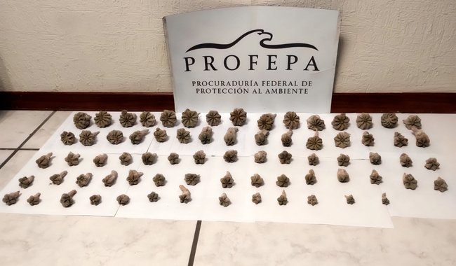 El pasado 16 de julio, la Profepa recibió el primer reporte sobre la detección de un paquete consistente en una caja de cartón, con 73 ejemplares de biznaga piedra, Aztekium ritteri; el paquete no contenía documentos que acreditaran la legal procedencia de su contenido, por lo que, se procedió al aseguramiento.