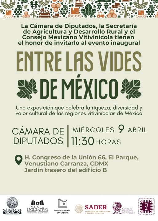Camara de DiputadosInfografías Asiste a la inauguración de la exposición «Entre las vides de México», que celebra la riqueza, diversidad y valor cultural de las regiones vitivinícolas de México. Por Araceli Bastida - abril 9, 2025 0 FacebookTwitterPinterestLinkedinReddItEmailWhatsAppTelegramVK