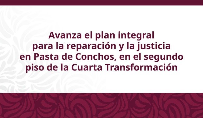 Avanza el plan integral para la reparación y la justicia en Pasta de Conchos, en el segundo piso de la Cuarta Transformación