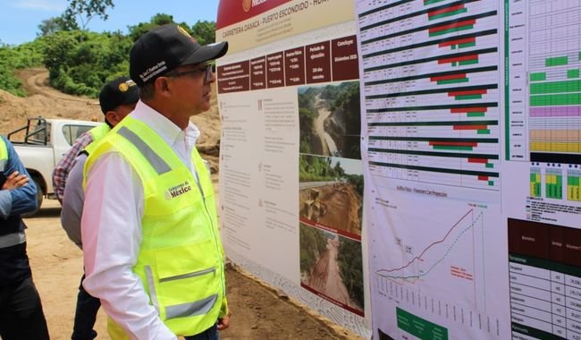 El subsecretario de Infraestructura de la Secretaría de Infraestructura, Comunicaciones y Transportes (SICT), Juan Carlos Fuentes Orrala, supervisó los trabajos de modernización del eje carretero Salina Cruz-Zihuatanejo, en el tramo San Pedro Pochutla-Santa María Huatulco.