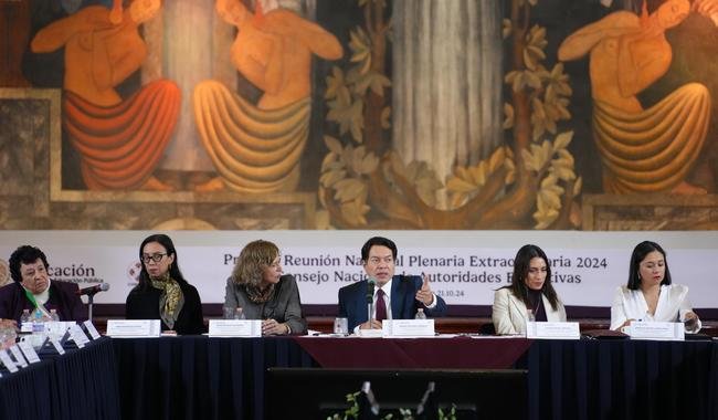 El secretario de Educación Pública, Mario Delgado Carrillo, presentó a las y los integrantes del Consejo Nacional de Autoridades Educativas (Conaedu) la directriz y objetivos generales en materia educativa del gobierno de la presidenta Claudia Sheinbaum Pardo.