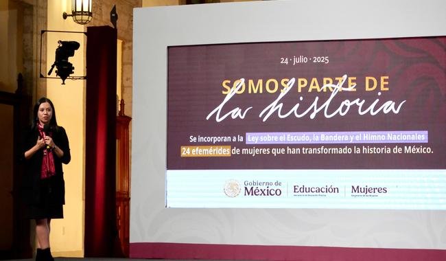 Con la reforma al artículo 18 de la Ley sobre el Escudo, la Bandera y el Himno Nacionales, publicadas el 21 de julio en el Diario Oficial de la Federación (DOF), se establecieron 32 fechas emblemáticas con las que se reconoce el importante papel transformador de las mujeres en la historia de México, informó la subsecretaria de Educación Básica, Angélica Noemí Juárez Pérez, durante la conferencia de prensa “La Mañanera del Pueblo”.