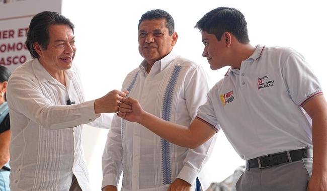 Acompañado del gobernador del estado, Javier May Rodríguez, destacó que esta medida beneficiará a más de 12 millones de niñas y niños en todo el país y permitirá alcanzar a más de 21 millones de beneficiarios de las Becas para el Bienestar.