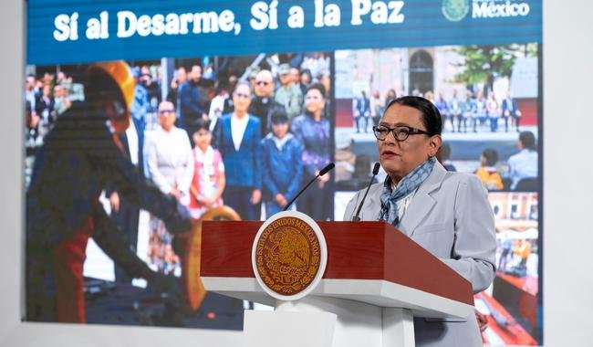 La funcionaria federal invitó a la población a seguir abrazando la bandera de la paz y a entregar sus armas, de manera voluntaria y anónima, a cambio recibir dinero en efectivo.