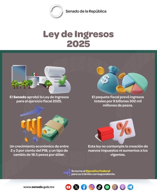 Con la aprobación de la Ley de Ingresos por parte del Senado, no se establecen nuevos impuestos ni se incrementan los existentes para 2025.