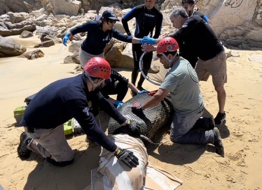 El equipo, integrado por la Conanp, Procuraduría Federal de Protección al Ambiente (Profepa), Secretaría de Marina, Capitanía de Puerto, FONMAR Los Cabos, Dirección de Ecología, ZOFEMAT y Policía Turística Municipal, Guardia Nacional, Marine Wildlife Rescue Center, Cabo Dolphins y el capitán Eleazar Angulo García, de la embarcación Little Greg, coordinó las maniobras de rescate desde cuatro navíos.