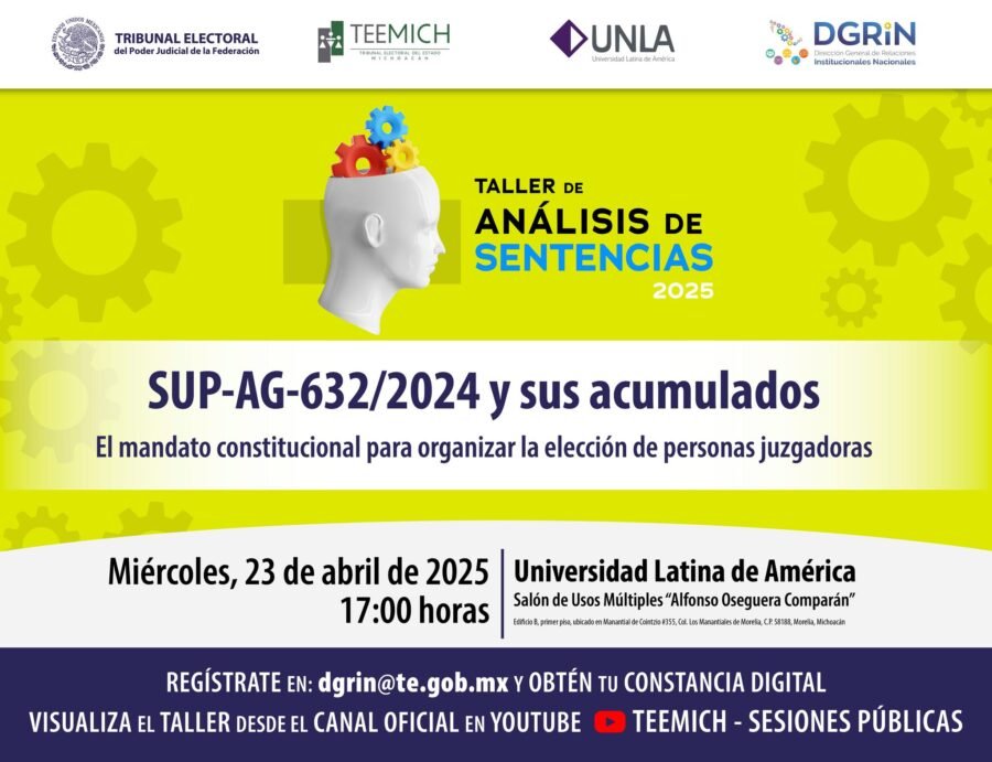 Tribunal Electoral del Poder Judicial de la FederaciónInfografías Conéctate al Taller de Análisis de Sentencias, en Morelia, Michoacán. Por Araceli Bastida - abril 22, 2025 0 FacebookTwitterPinterestLinkedinReddItEmailWhatsAppTelegramVK