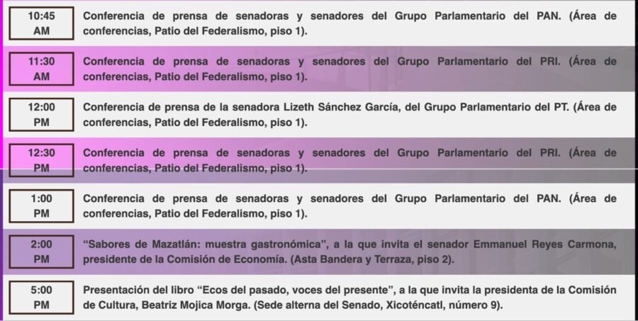 Consulta la agenda de #HoyEnElSenado.