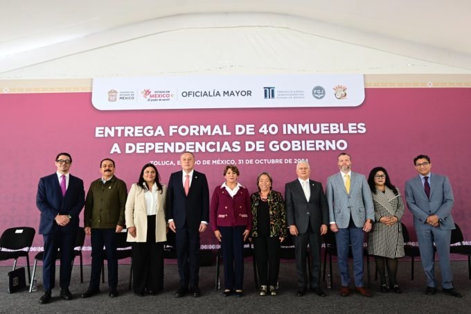 TOLUCA, Estado de México.- En un hecho histórico y tras 35 años de abandono, la Gobernadora Delfina Gómez Álvarez inició el rescate de inmuebles de la Administración Pública Estatal, con la entrega de 40 bienes que serán distribuidos entre la Fiscalía General de Justicia (FGJEM); la Secretaría de la Defensa Nacional (Sedena); el Tribunal de Justicia Administrativa (TRIJAEM) y el Sindicato Único de Trabajadores de los Poderes, Municipios e Instituciones Descentralizadas del Estado de México (SUTEyM).