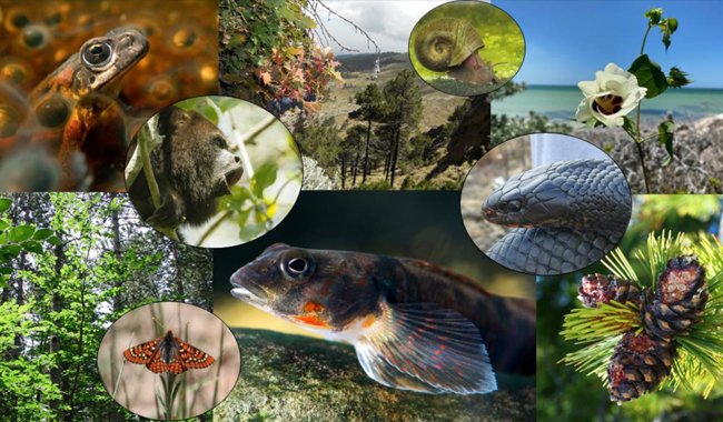 Créditos de imagen (de izquierda a derecha, de arriba a abajo): Capensibufo rosei (crédito de imagen: J. Shelton), Alouatta palliata (crédito de imagen: M. Sicilia], Berberis alpina (crédito de imagen: A. Mastretta-Yanes), Planorbella magnifica (Crédito de imagen: USFWS), Drymarchon corais couperi (crédito de imagen: P. Pattavina), Gossypium hirsutum (crédito de imagen: A Wegier), Fagus sylvatica (crédito de imagen: A. Porté), Euphydryas anicia cloudcrofti (crédito de imagen: J. Alleman) Etheostoma osburni (crédito de la imagen: R. Hagerty), Pinus albicaulis (crédito de la imagen: R. Sniezko)