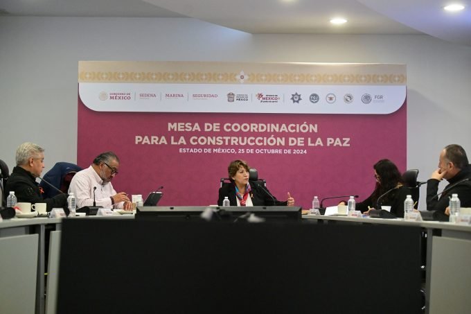 TOLUCA, Estado de México.- En la Mesa de Coordinación para la Construcción de la Paz que encabeza la Gobernadora Delfina Gómez Álvarez, se revisaron los avances y anuncios en materia de seguridad, realizados durante la semana que concluye, destacando la disminución de los homicidios dolosos; la renivelación salarial para policías estatales; la entrega de equipamiento y vehículos de alta tecnología a la Secretaría de Seguridad del Estado de México (SSEM); y la conclusión del programa de Canje de Armas.