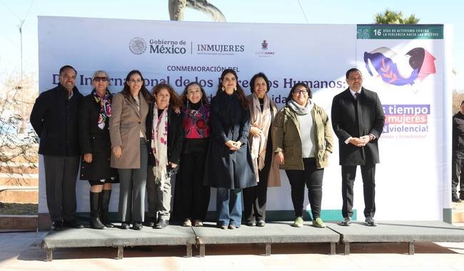 Ciudad Juárez, Chihuahua, 09 de diciembre de 2024. – En el marco del Día Internacional de los Derechos Humanos, la Secretaría de las Mujeres de México y el Gobierno Municipal de Ciudad Juárez organizaron el evento “Conmemoración del Día Internacional de los Derechos Humanos: Construir paz desde la comunidad”, un espacio para visibilizar los esfuerzos por garantizar el derecho de las mujeres a una vida libre de violencia, impulsar la construcción de paz y fortalecer el tejido social.