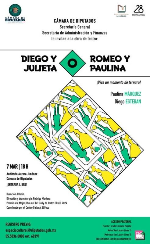 Camara de DiputadosInfografías “Diego y Julieta o Romeo y Paulina” llega a la Cámara de Diputados. Una obra que te hará vivir un momento de ternura y reflexión. Por Araceli Bastida - marzo 3, 2025 0 FacebookTwitterPinterestLinkedinReddItEmailWhatsAppTelegramVK