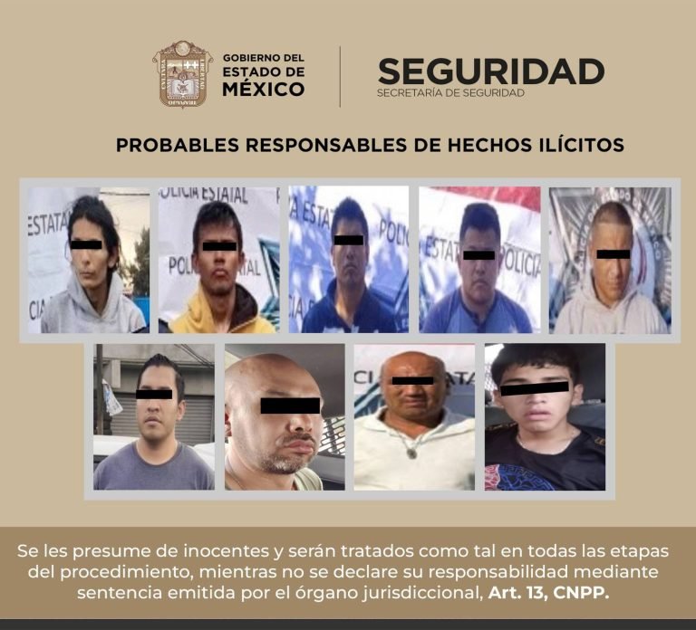 Los detenidos responden a los nombres de Michelle “N” de 21 años, Emmanuel “N” y Jesús “N”, ambos de 32 años, Adahir “N” de 28 años, Ricardo “N” de 33 años, Edwin “N” de 19 años, Omar “N” de 37 años, Ricardo “N” de 44 años, José “N” de 31, así como un menor de 17 años.