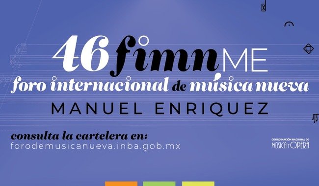 El Instituto Nacional de Bellas Artes y Literatura (Inbal), a través de la Coordinación Nacional de Música y Ópera, anuncia que el Foro Internacional de Música Nueva Manuel Enríquez (Fimnme), en su edición 46, presentará 36 actividades que incluyen siete presentaciones en Mérida, Morelia, Querétaro, Aguascalientes y Puebla.
