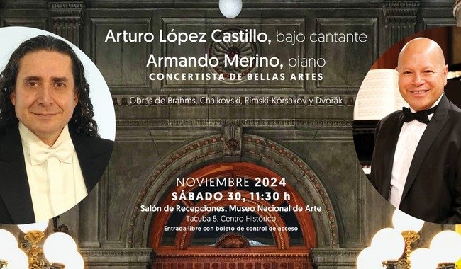 El Instituto Nacional de Bellas Artes y Literatura (INBAL), a través de la Coordinación Nacional de Música y Ópera, presentará el dueto de concertistas de Bellas Artes integrado por el bajo cantante Arturo López Castillo y el pianista Armando Merino.