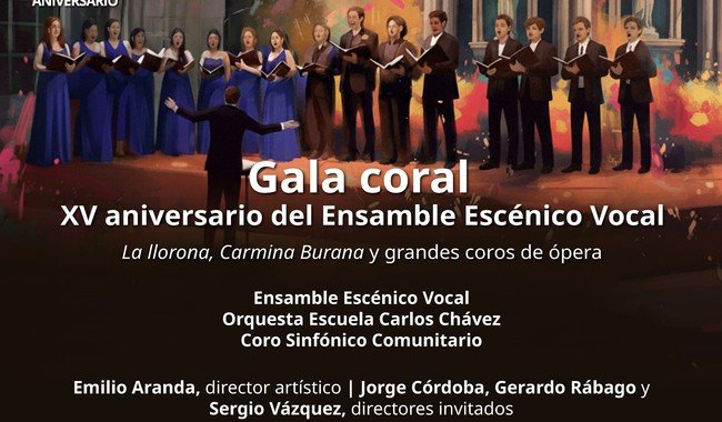 La Gala Coral del XV Aniversario del Ensamble Escénico Vocal promete ser una velada íntima y festiva que evocará la magia del canto colectivo y celebrará 15 años de historia, talento y unión artística. Se llevará a cabo el domingo 30 de noviembre, a las 13:00 h, en el Auditorio Blas Galindo. La entrada es libre. Para más información consulta la página cenart.gob.mx.