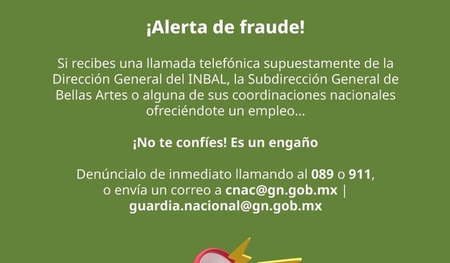Desde el 20 de diciembre de 2020, el INBAL ha mantenido una comunicación constante en sus redes sociales para alertar sobre estos intentos de estafa, publicando mensajes de manera periódica para advertir y prevenir posibles engaños.