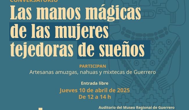 La Secretaría de Cultura, a través de la Unidad Regional de Guerrero de la Dirección General de Culturas Populares, Indígenas y Urbanas (DGCPIU), en colaboración con el Museo Regional de Guerrero/INAH, invita al conversatorio “Las manos mágicas de las mujeres tejedoras de sueños”, un espacio dedicado a la difusión y reconocimiento del arte textil en el Estado de Guerrero.