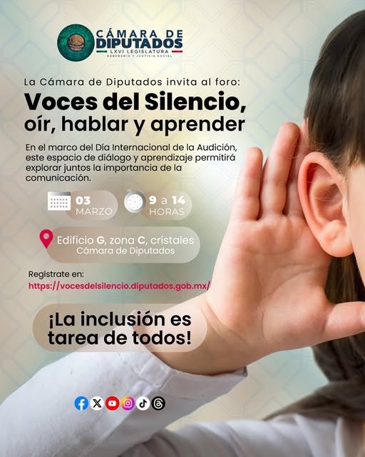 Camara de DiputadosInfografías En el Día Internacional de la Audición, la Cámara de Diputados te invita al foro “Voces del Silencio. Oír, hablar y aprender”. Por Araceli Bastida - marzo 3, 2025 0 FacebookTwitterPinterestLinkedinReddItEmailWhatsAppTelegramVK