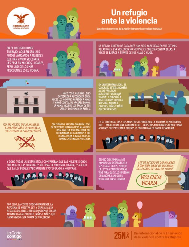 En el marco del #25N, #LaCorte protege el derecho de las mujeres a una vida libre de violencia mediante diversas sentencias, como esta: donde determinó la validez de la legislación de San Luis Potosí, que prevé la figura de violencia vicaria.