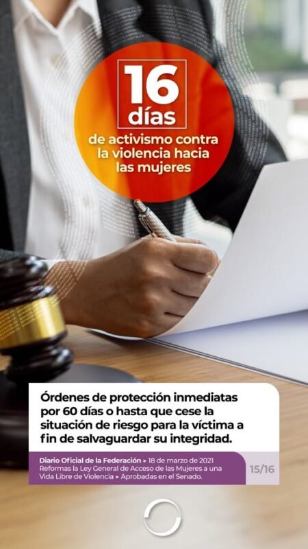 En estos 16 días de activismo, recordemos que el Senado aprobó reformas para salvaguardar la integridad de las mujeres en caso de alguna situación de riesgo.