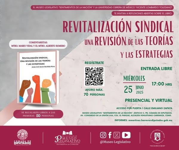 Camara de DiputadosInfografías En la #NocheDeMuseos te invitamos al conversatorio sobre el libro: Revitalización sindical. Una revisión de las teorías y las estrategias. Por Araceli Bastida - junio 25, 2025 0 FacebookTwitterPinterestLinkedinReddItEmailWhatsAppTelegramVK