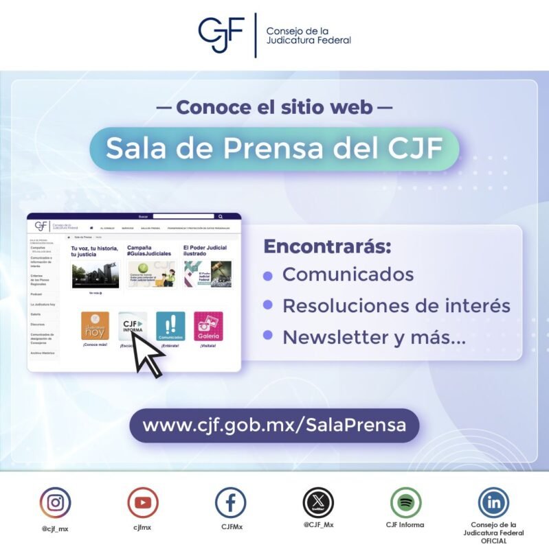 Consejo de la Judicatura FederalInfografías En la sección #SalaDePrensa del #CJF encuentras la información periodística y editorial más relevante. Por Araceli Bastida - marzo 3, 2025 0 FacebookTwitterPinterestLinkedinReddItEmailWhatsAppTelegramVK