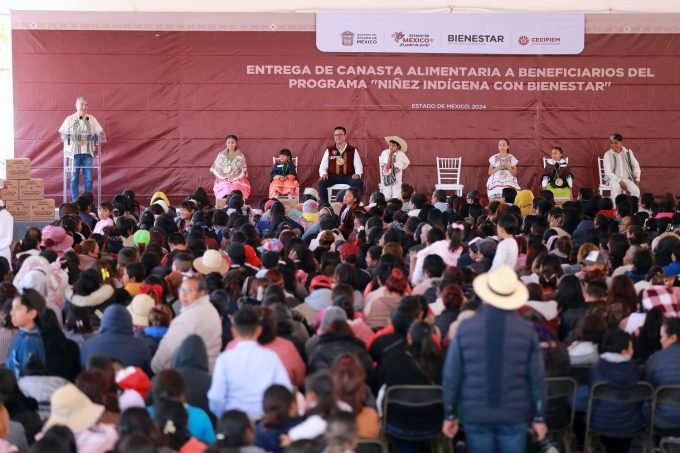 JOCOTITLÁN, Estado de México.- Ayudar a la niñez indígena con su alimentación es apoyar la economía familiar de los pueblos originarios del Estado de México, por ello, Juan Carlos González Romero, Secretario de Bienestar, a nombre de la Gobernadora Delfina Gómez Álvarez, entregó 2 mil 811 canastas alimentarias del programa “Niñez Indígena con Bienestar” para niñas y niños de los municipios de Jocotitlán, Atlacomulco y Jiquipilco.