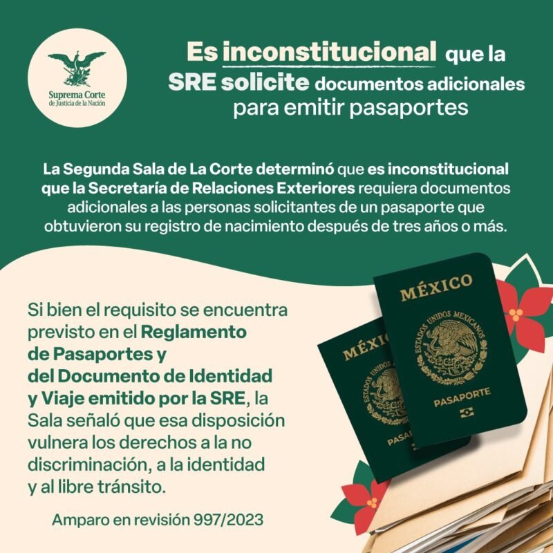 Es inconstitucional que la SRE requiera documentos adicionales a las personas solicitantes de un pasaporte que obtuvieron su registro de nacimiento después de tres años o más.