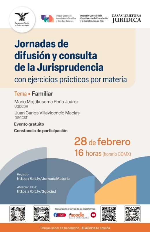 Evento gratuito: ¡No te pierdas la próxima sesión de Jornadas de difusión y consulta de la Jurisprudencia en materia Familiar!