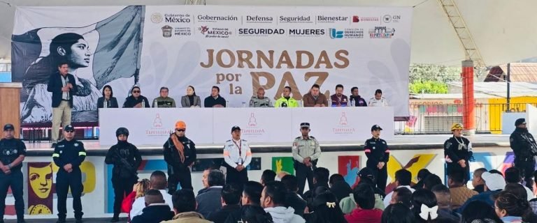 TOLUCA, Estado de México. – El Gobierno del Estado de México, encabezado por la Maestra Delfina Gómez Álvarez, se unió a la estrategia nacional “Jornadas por la Paz” encabezada por la Secretaría de Seguridad y Protección Ciudadana del Gobierno de México, con un despliegue exitoso en 32 municipios mexiquenses con el propósito de atender, prevenir y erradicar cualquier tipo de violencia, así como reducir la incidencia delictiva.