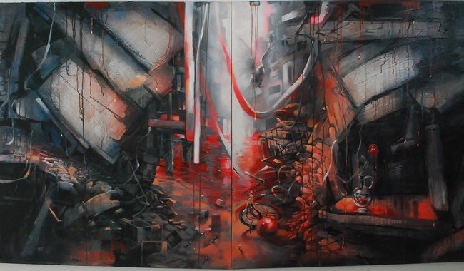 Entre las piezas destaca Ciudad del silencio, de Tania Janco, una pintura de gran formato que aborda un tema postapocalíptico. En el centro de la composición aparece una paloma blanca, símbolo de paz y esperanza.