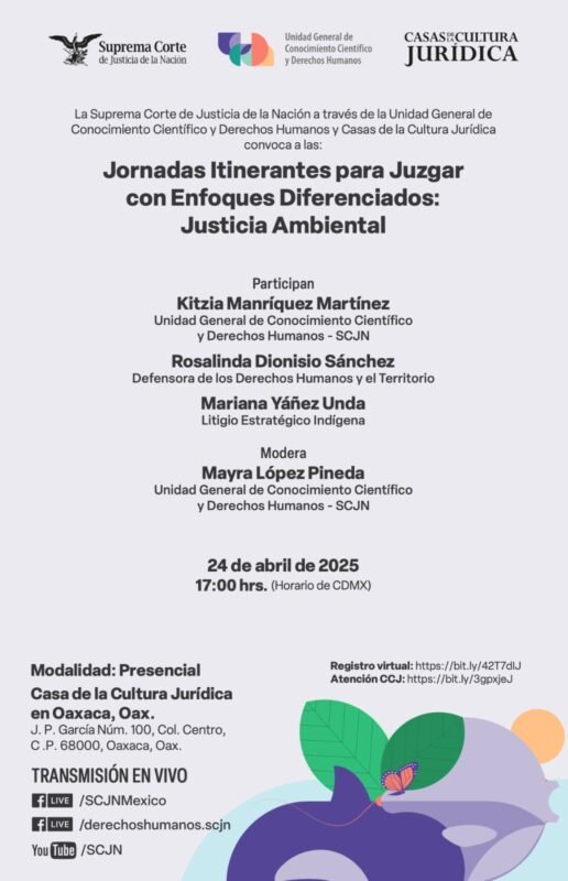 Suprema Corte de Justicia de la NaciónInfografías ¡HOY! Participa en las «Jornadas Itinerantes para juzgar con Enfoques Diferenciados: Justicia Ambiental». Convocan la Unidad General de Conocimiento Científico y Derechos Humanos y las Casas de la Cultura Jurídica, SCJN. Por Araceli Bastida - abril 24, 2025 0 FacebookTwitterPinterestLinkedinReddItEmailWhatsAppTelegramVK