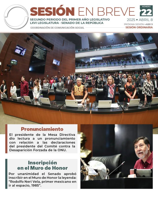 Senado de la RepublicaInfografías #HoyEnElSenado se aprobó inscribir en el Muro de Honor del Senado la leyenda “Rodolfo Neri Vela, primer mexicano en ir al espacio, 1985”. Por Araceli Bastida - abril 8, 2025 0 FacebookTwitterPinterestLinkedinReddItEmailWhatsAppTelegramVK
