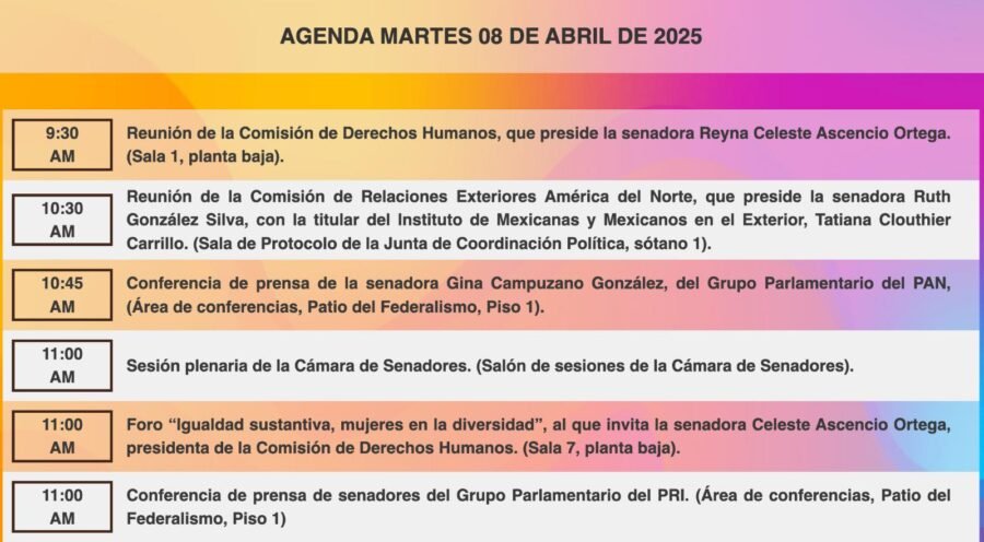 #HoyEnElSenado se desarrollará la siguiente agenda de actividades.