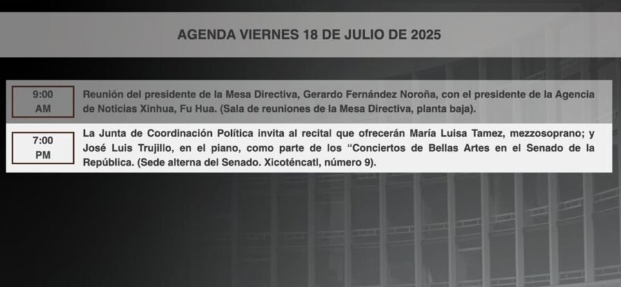 #HoyEnElSenado se desarrollará la siguiente agenda de actividades.
