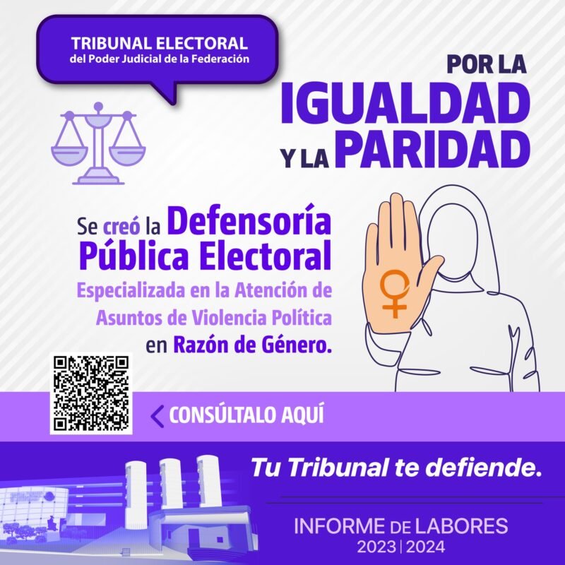 Tribunal Electoral del Poder Judicial de la FederaciónInfografías #InformeTEPJF | TE contamos La Defensoría Pública Electoral para Mujeres orienta, asesora y representa jurídicamente en asuntos de violencia política en razón de género. Por Araceli Bastida - diciembre 2, 2024 0 FacebookTwitterPinterestLinkedinReddItEmailWhatsAppTelegramVK
