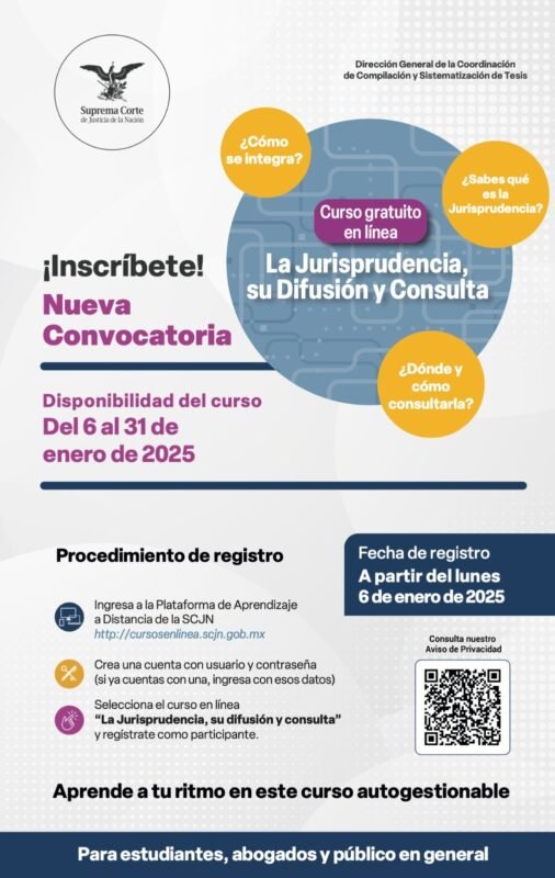 Inicio Suprema Corte de Justicia de la Nación Infografías Inscríbete HOY al Curso en línea “La jurisprudencia, su difusión y consulta”
