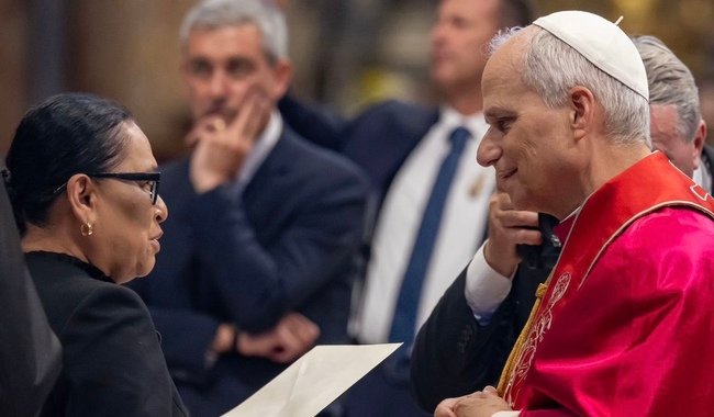 Este fin de semana, la secretaria viajó al Vaticano para acudir a la ceremonia masiva de inicio del pontificado de León XIV este domingo.