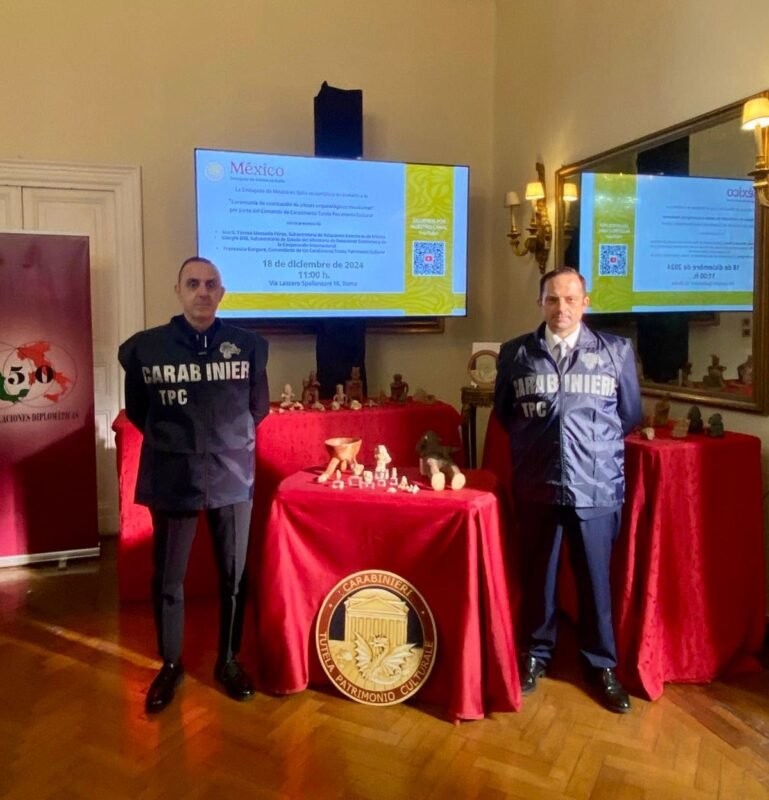 Cabe destacar que, desde 2018, gracias a la cooperación bilateral, México ha logrado la restitución de casi 800 piezas arqueológicas confiscadas por los cuerpos de seguridad de Italia.