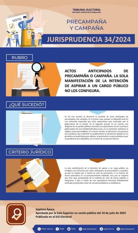 Jurisprudencia 34/2024 Rubro: Actos anticipados de precampaña o campaña. La sola manifestación de la intención de aspirar a un cargo público no los configura.